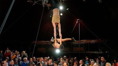 “Wat begint als een avondje circus, verandert in een kolkend tafereel waar boven en onder, artiest en toeschouwer, podium en tribune door elkaar lopen. Acrobaten vliegen rakelings boven je hoofd, je tafel wordt ineens een podium, en het balkon blijkt het startpunt van een halsbrekende klim. Met flair en fantasie blazen deze Franse innovators frisse lucht in het tentcircus en presenteren je een avond die je niet snel vergeet.