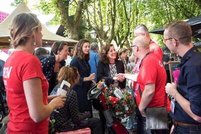 Ingrid van Engelshoven is minister van Cultuur én verantwoordelijk voor emancipatie. Zij was erg geïnteresseerd in de manier waarop wij samen met Theaterfestival Boulevard al een aantal jaar dove en horende bezoekers samen laten genieten van theater. Zij liet weten dat zij het belangrijk vindt als podiumkunsten inclusief zijn. De tweehonderd bezoekers van het gebarencafé waren het daar helemaal mee eens!